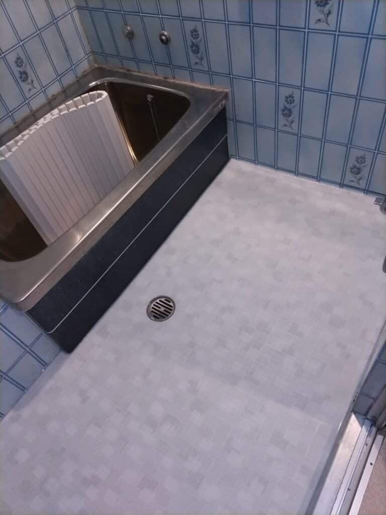 浴室の床をリフォームしました。 今回は既存の床にそのまま施工できる床シートを使用し、工期を抑えながらきれいで快適な床へ。 クッション性があり足あたりがやわらかく、断熱効果で冬の冷たさも軽減されています。 また、滑りにくい表面加工で安心して使える浴室に。 冷たい・滑りやすい・傷みが気になるといった浴室の床のお悩みを、手軽に解消できるリフォームです。