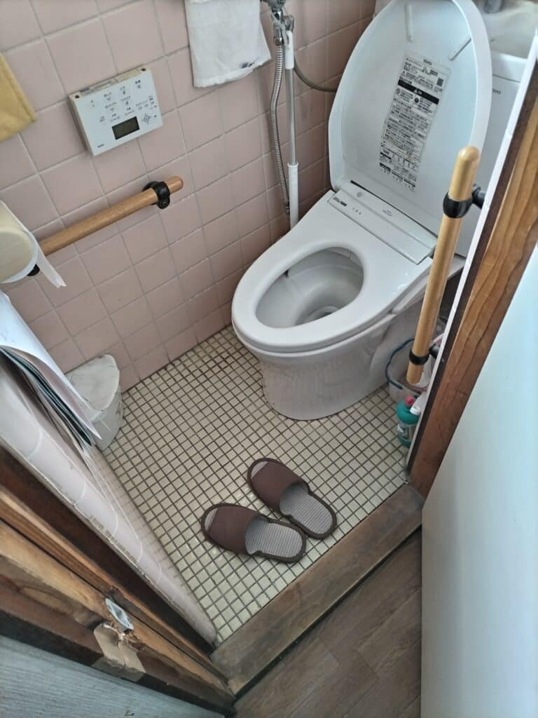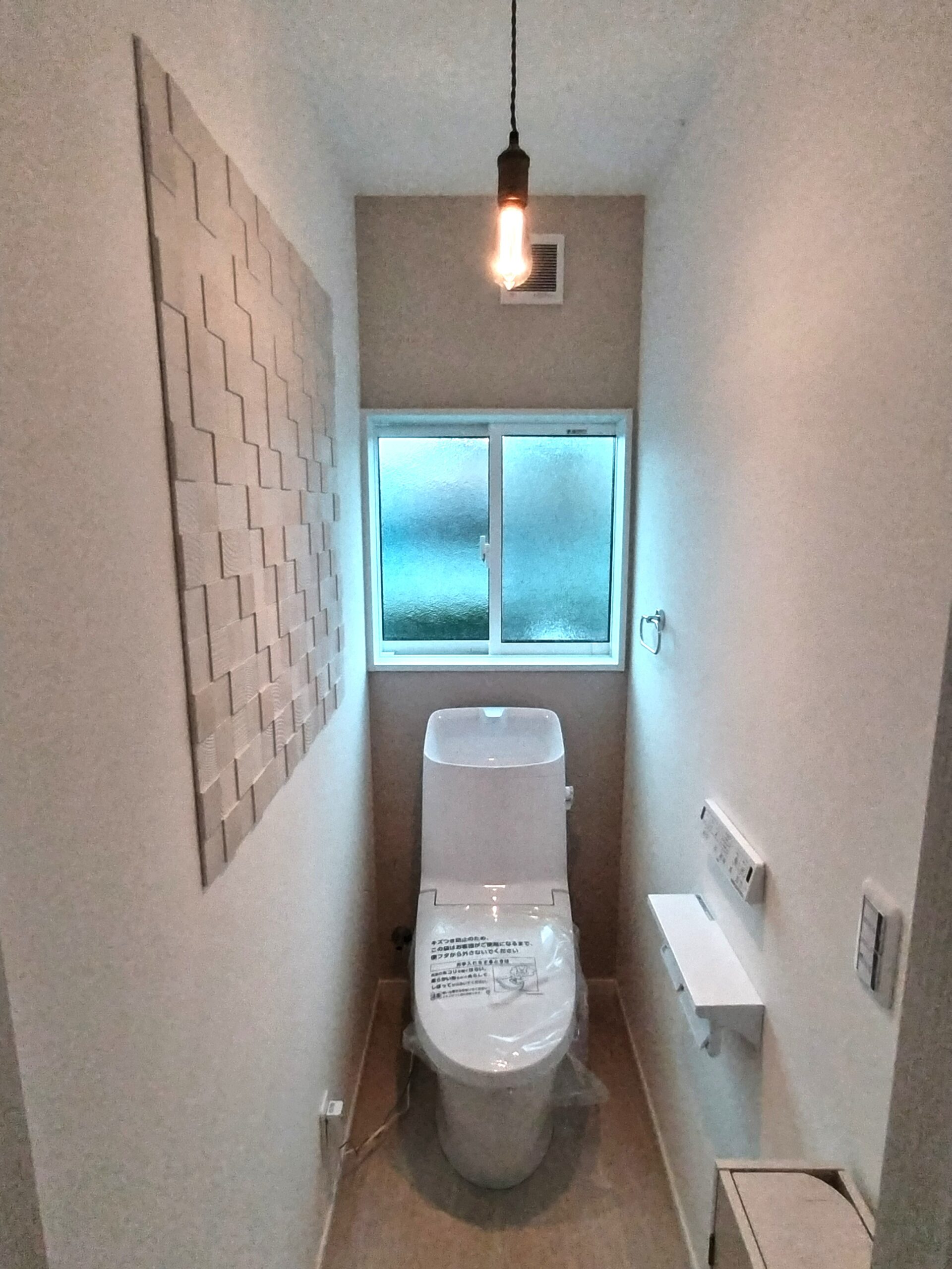 1階のお住まいを間取り変更からご提案をさせていただきました。お風呂はご希望の1坪のユニットバスに、洗面室も大きめに使いやすく、おトイレの雰囲気もシックに。キッチンはご希望のカウンタータイプを設置し、落ち着いた感じのリビングにマッチしています。クロスや床の色も統一性を持たせて、色々とお打合せをさせていただいてまとまりの良い雰囲気になりました。間取り変更に伴い、大きくおしゃれな玄関ドアも印象的です。